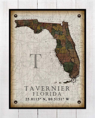 Tavernier Florida Vintage Design Board Mounted Canvas Print