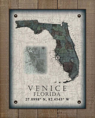 Venice Florida Vintage Design Board Mounted Canvas Print