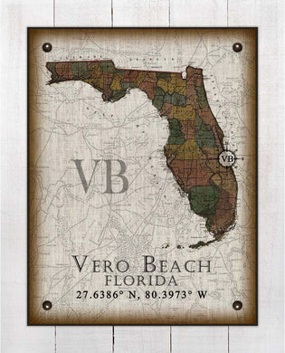 Vero Beach Florida Vintage Design Board Mounted Canvas Print