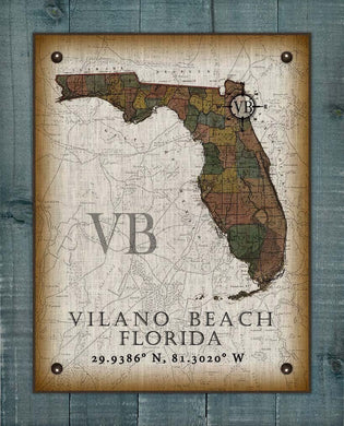 Vilano Beach Florida Vintage Design Board Mounted Canvas Print