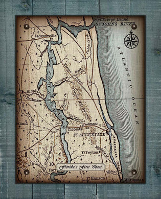 First Coast Florida Vintage Map-Amelia Island To St Augustine- Board Mounted Canvas Print