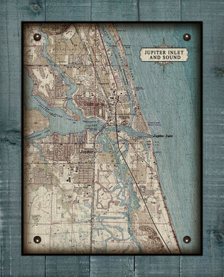 Florida Jupiter Inlet And Sound Map Board Mounted Canvas Print
