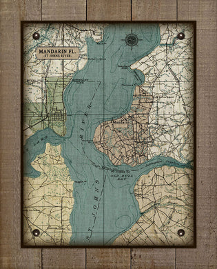 Florida St Johns River -Mandarin-Vintage Map Board Mounted Canvas Print
