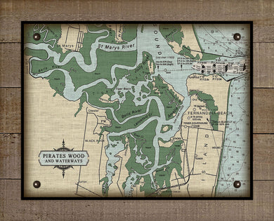 Florida Pirates Wood Amelia Island and Yulee Nautical Chart (2) Board Mounted Canvas Print