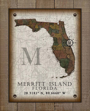 Merritt Island Florida Vintage Design Board Mounted Canvas Print