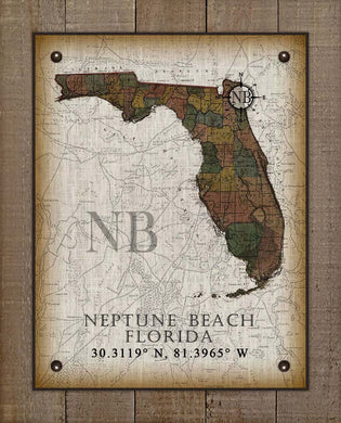 Neptune Beach Florida Vintage Design Board Mounted Canvas Print
