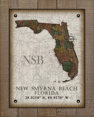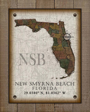 New Smyrna Beach Florida Vintage Design Board Mounted Canvas Print