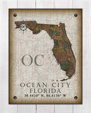 Ocean City Florida Vintage Design Board Mounted Canvas Print