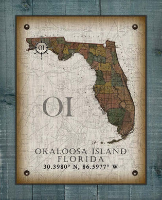 Okaloosa Island Florida Vintage Design Board Mounted Canvas Print