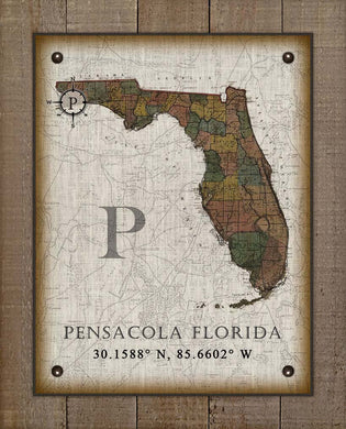 Pensacola Florida Vintage Design Board Mounted Canvas Print