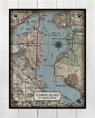 St Johns River & Fleming Island Vintage Map Board Mounted Canvas Print