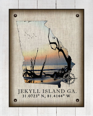 Jekyll Island Georgia Vintage Design (Driftwood Beach) Board Mounted Canvas Print