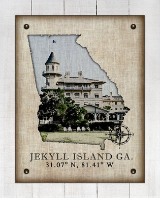 Jekyll Island Georgia Vintage Design (Hotel) Board Mounted Canvas Print