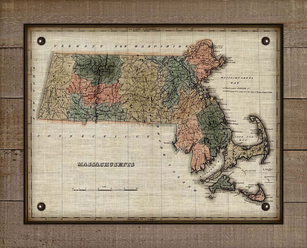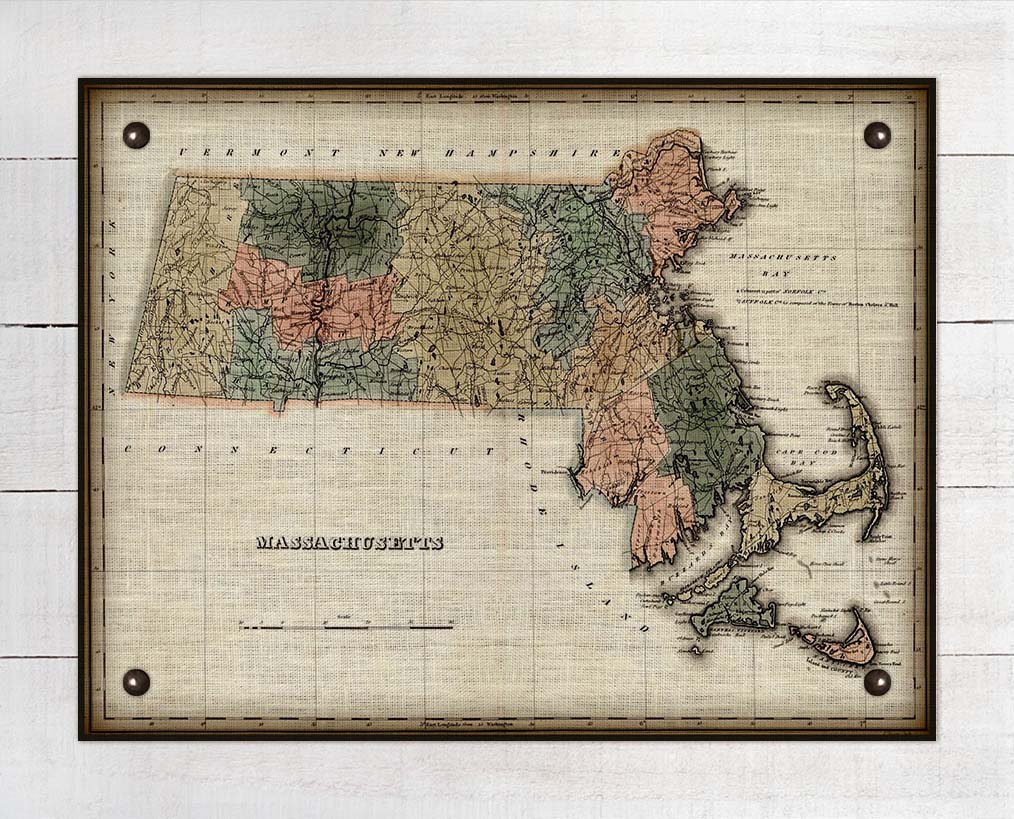 1800s Massachusetts Map - Board Mounted Canvas Print