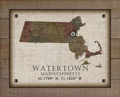 Watertown Massachusetts Vintage Design - Board Mounted Canvas Print