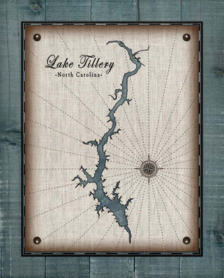 Lake Tillery North Carolina Map Design - Board Mounted Canvas Print