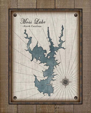 Moss Lake North Carolina Map Design (2) - Board Mounted Canvas Print