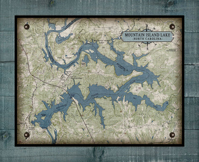 Mountain Island Lake North Carolina Map Design #2 - Board Mounted Canvas Print