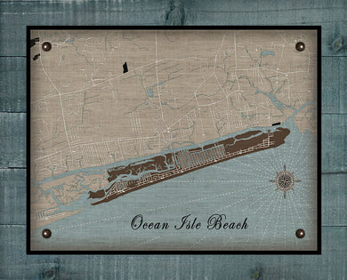 Ocean Isle Beach North Carolina Map Design - Board Mounted Canvas Print