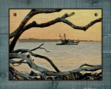 Shrimp Boat And Driftwood - Board Mounted Canvas Print