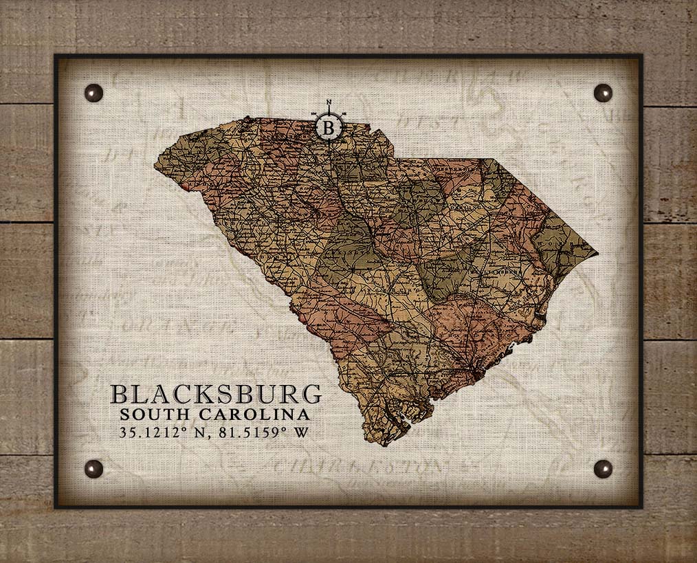Blacksburg South Carolina Vintage Design - Board Mounted Canvas Print