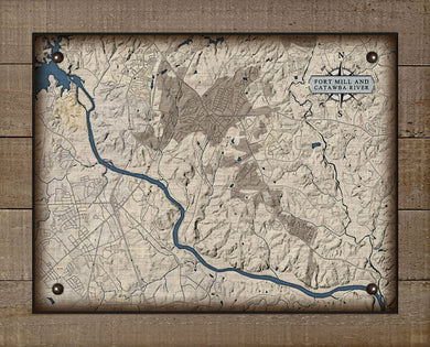 Fort Mill & Catawba River South Carolina Map - Board Mounted Canvas Print