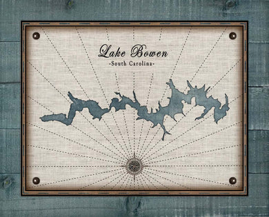 Lake Bowen South Carolina Map Design - Board Mounted Canvas Print