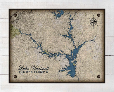 Lake Hartwell South Carolina Map Design - Board Mounted Canvas Print