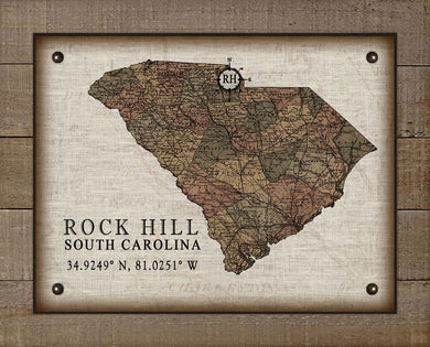 Rock Hill South Carolina Vintage Design - Board Mounted Canvas Print